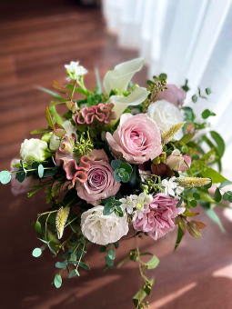 その間の静かな時間を くすんだピンクの花で秋らしく仕上げましょう
